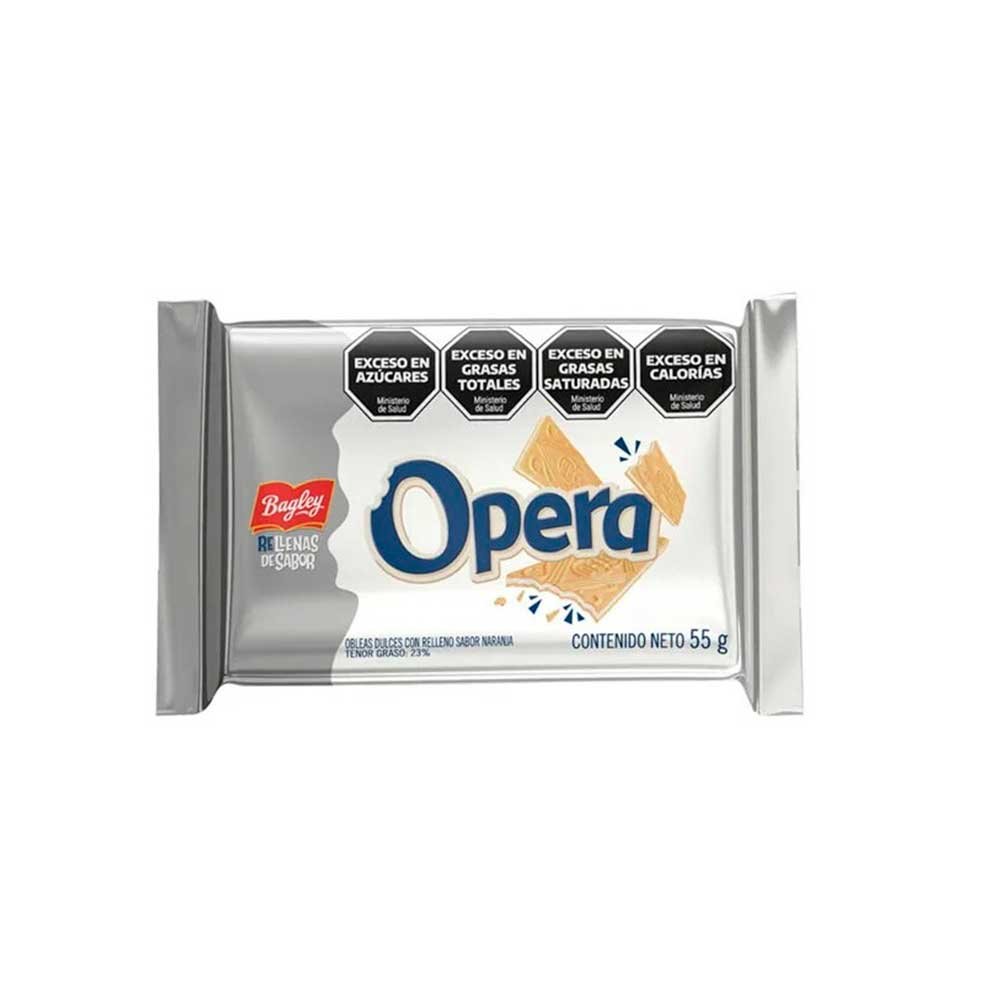 Oblea dulce rellena con crema sabor naranja x 55g. Pack 4 unidades x 220g.